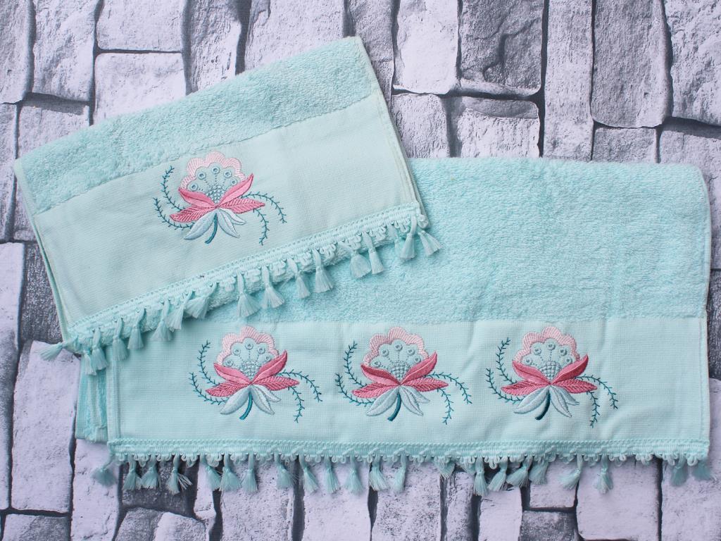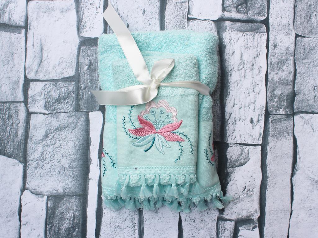 Produktinformationen "Mitgift Land Aysira bestickt 2 Stück Handtuch Set Mint"