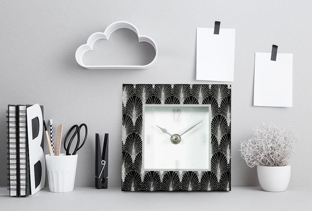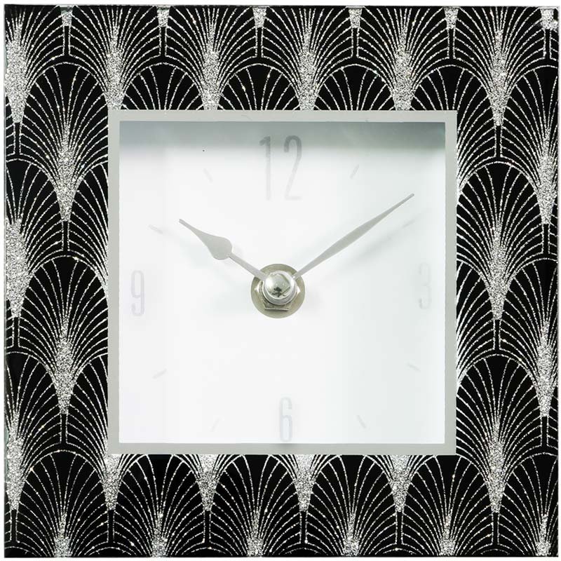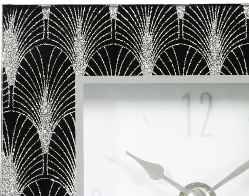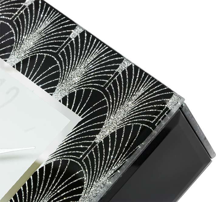Lieferumfang und Abmessung: 1 x Moderne Kleine Uhr Kristal mit Palmemotive I Schwarz I 14cm