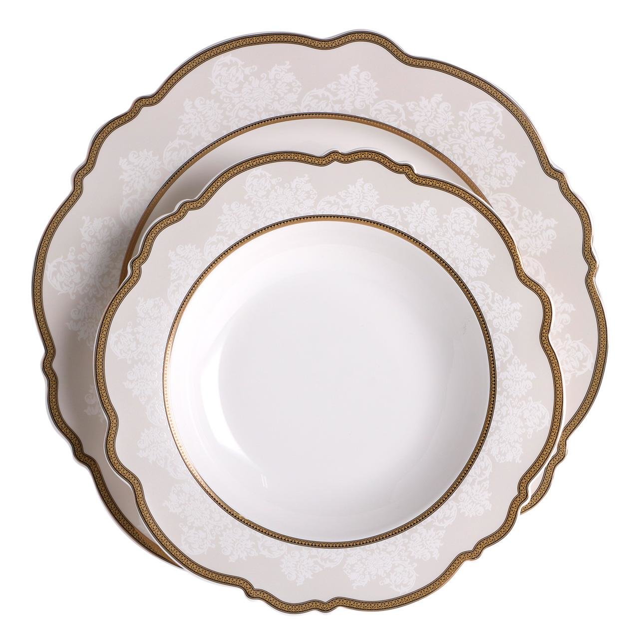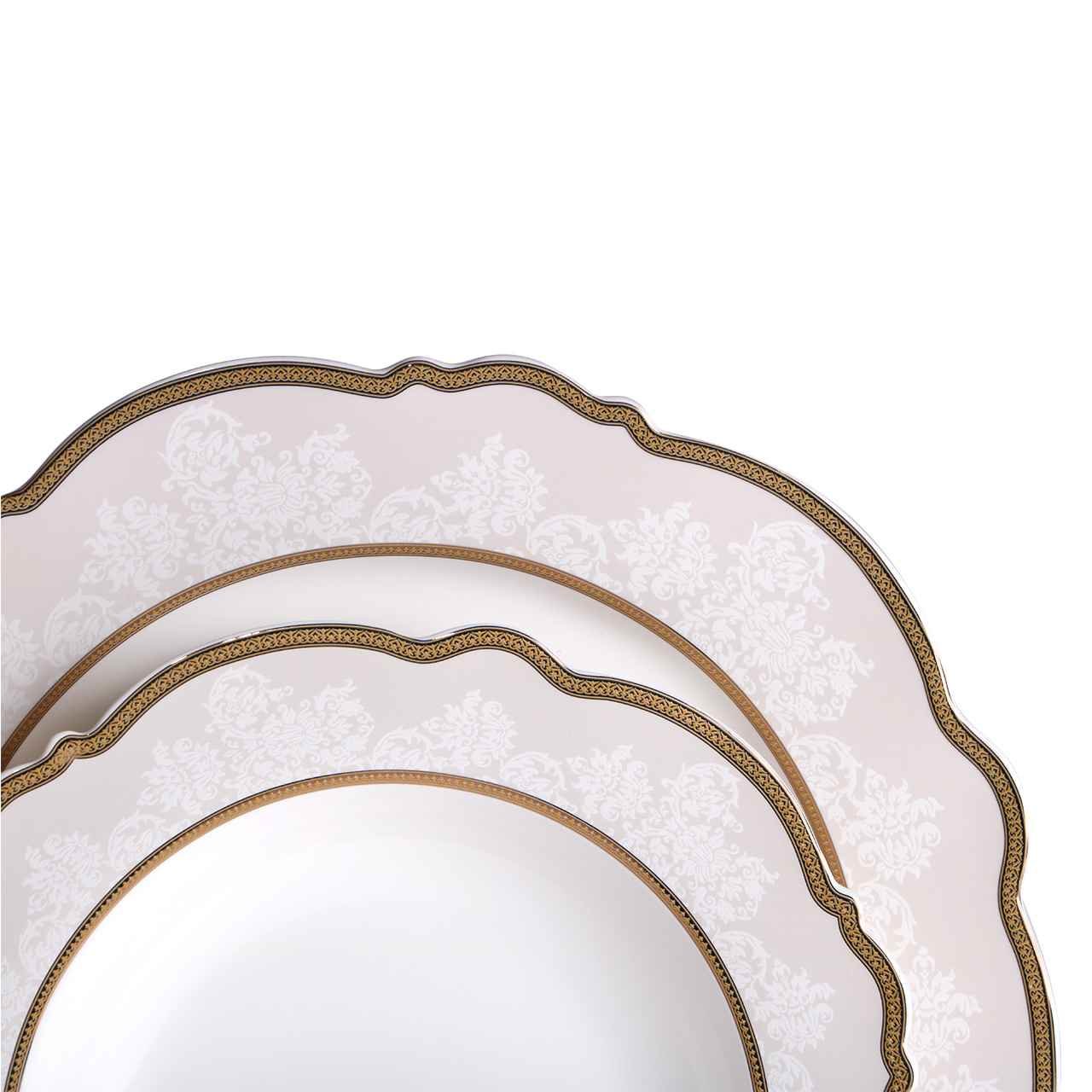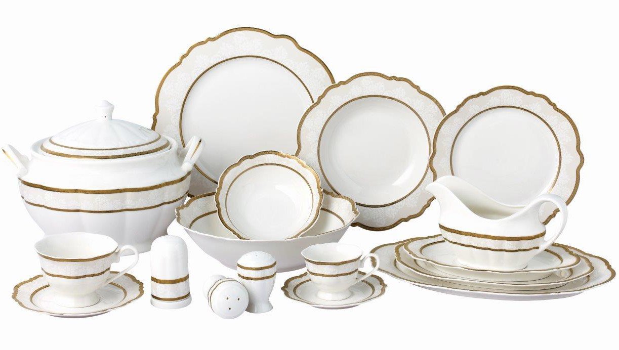 Lieferumfang und Abmessungen: 1x Neva Elite Rund Blumenform Gold Verzierung 85 Teilig Porzellan Ess-Set I 12 Personen I