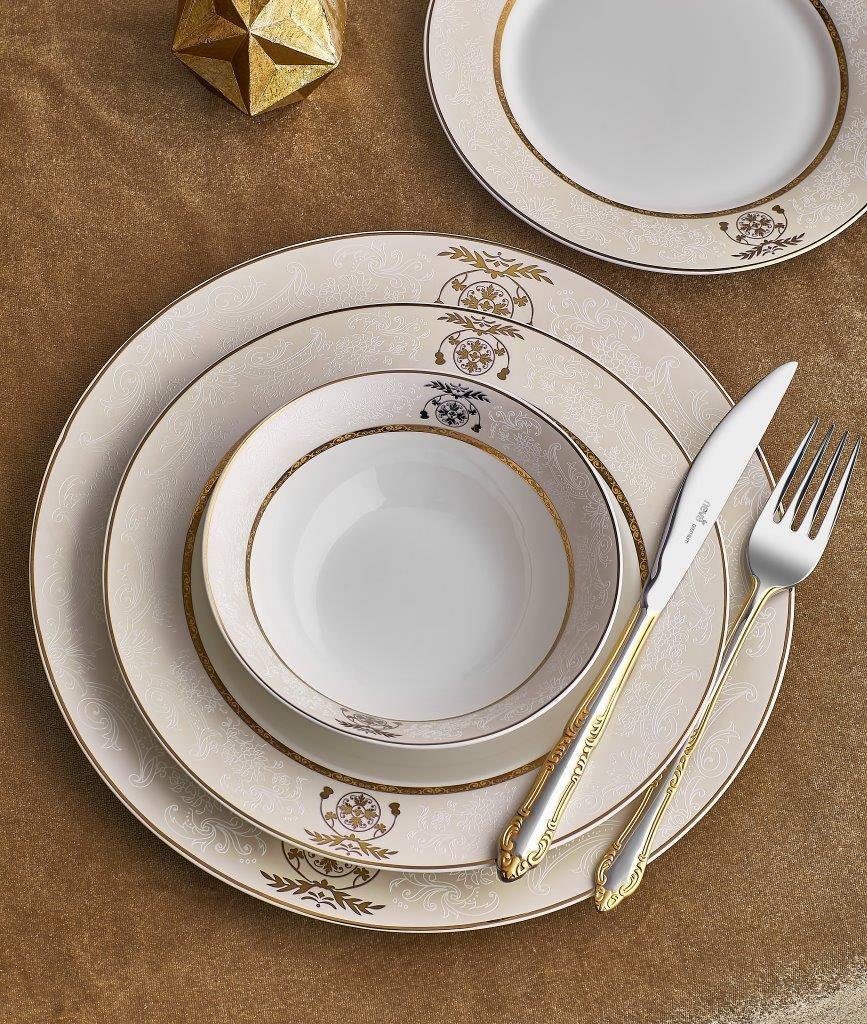 Lieferumfang und Abmessung: 1 x Neva Nadia 60 Teiliger Elegance Tafelservice Set | 12 Personen | Rund | N2571