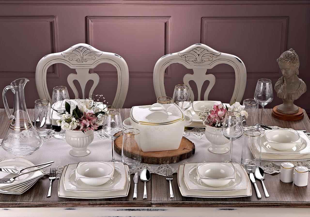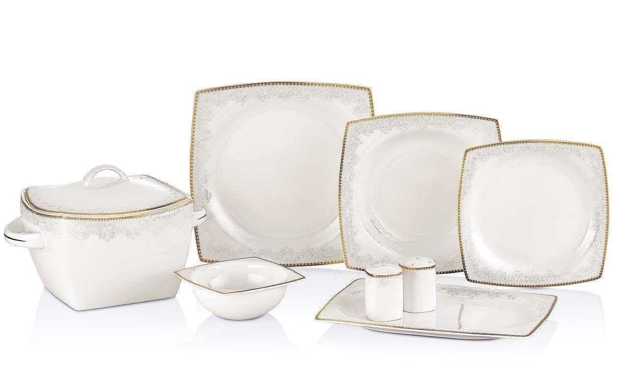 Lieferumfang&Abmessung: 1x Neva Rüya 60 Teilig Premium Bone Porzellan Essservice für 12 Personen | N2460