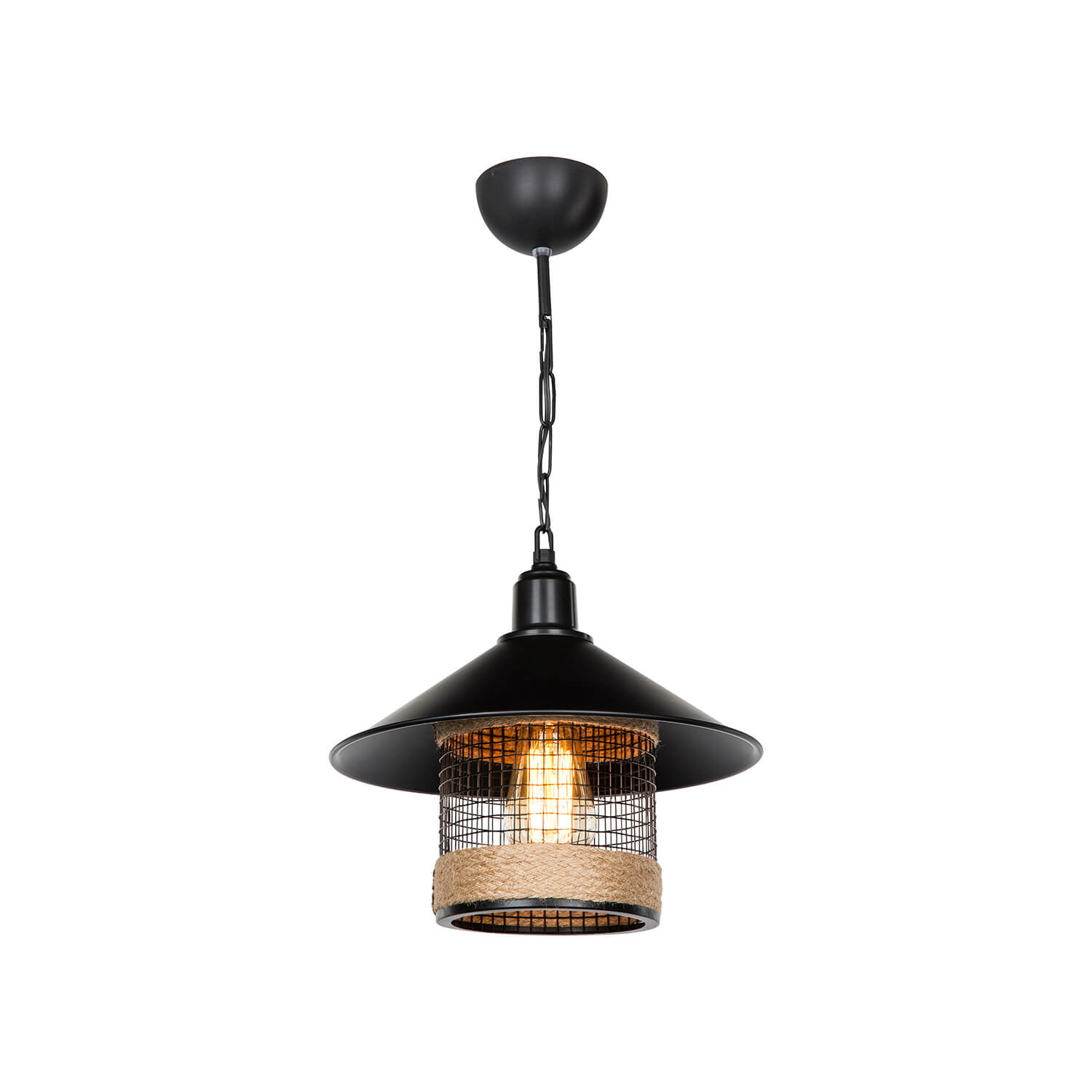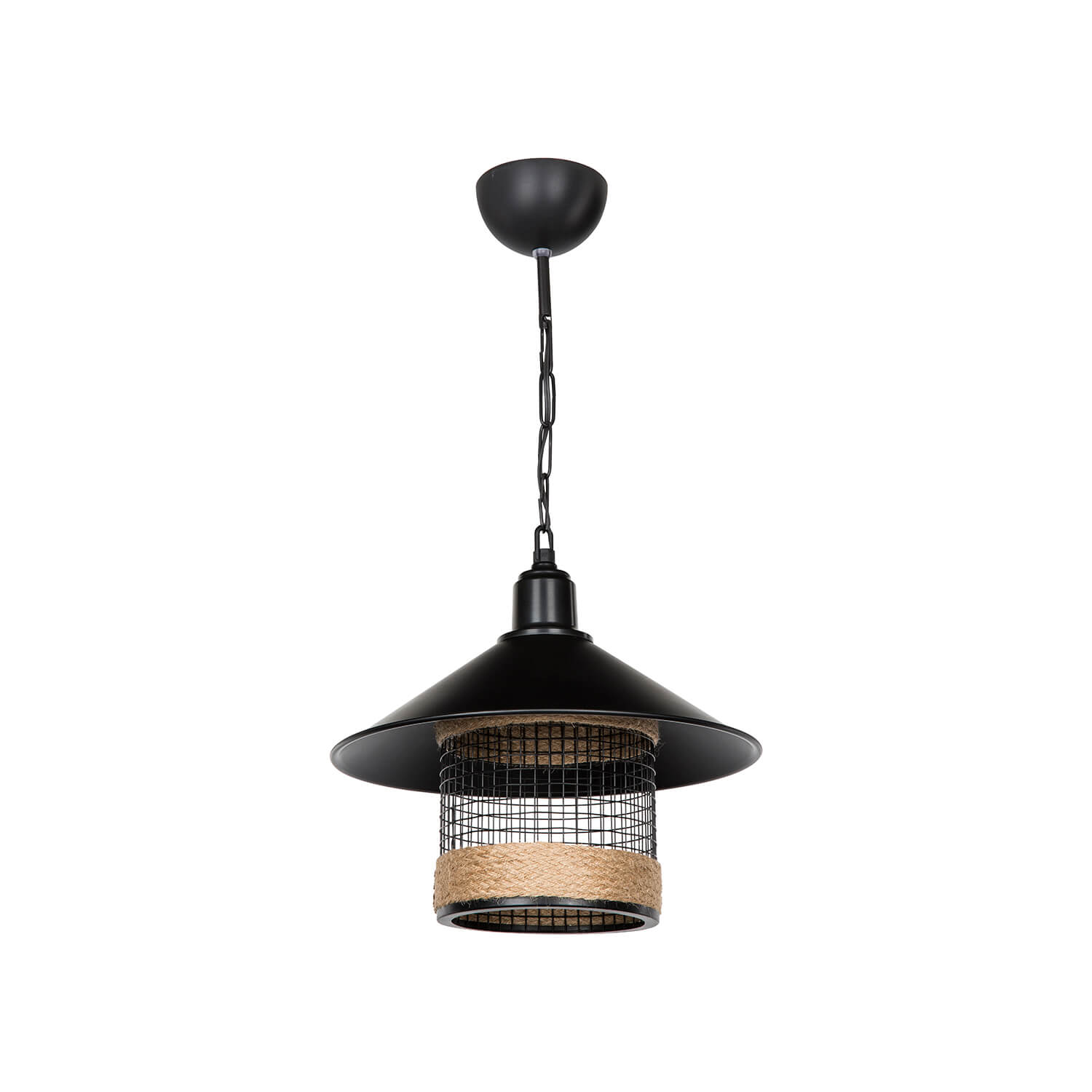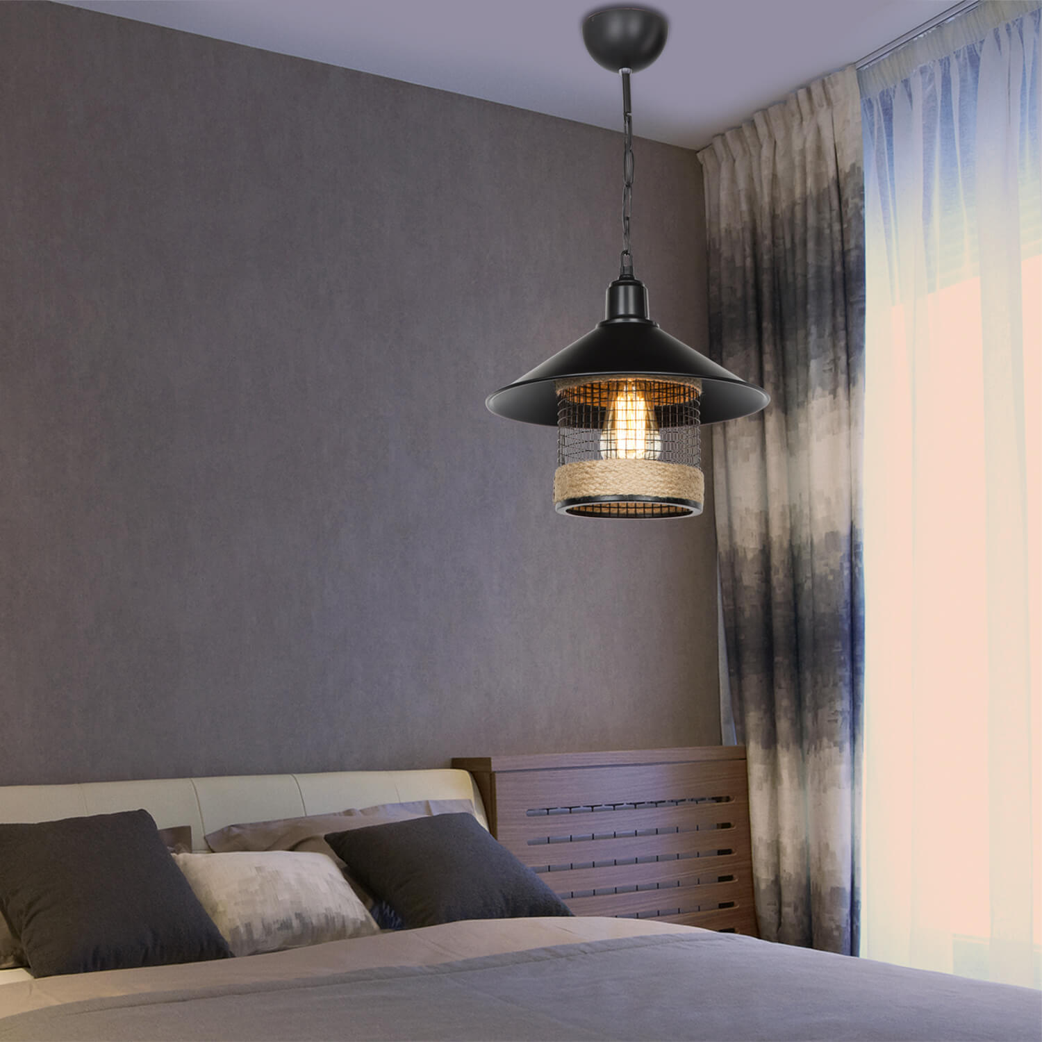 . Elektrostatisch lackiertes Metallskelett, das den modernen Stil widerspiegelt; „Nil Pendant“, das ein anderes Design aufweist, indem es mit einem in organisches Seil gewickelten Käfig gemischt wird, verleiht der Umgebung, in der es sich befindet, ein anderes Ambiente.
