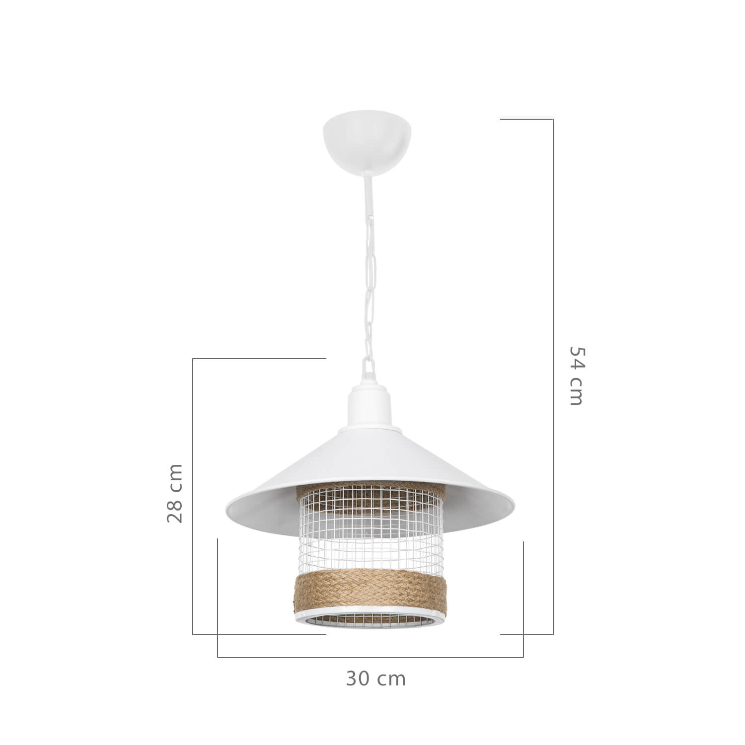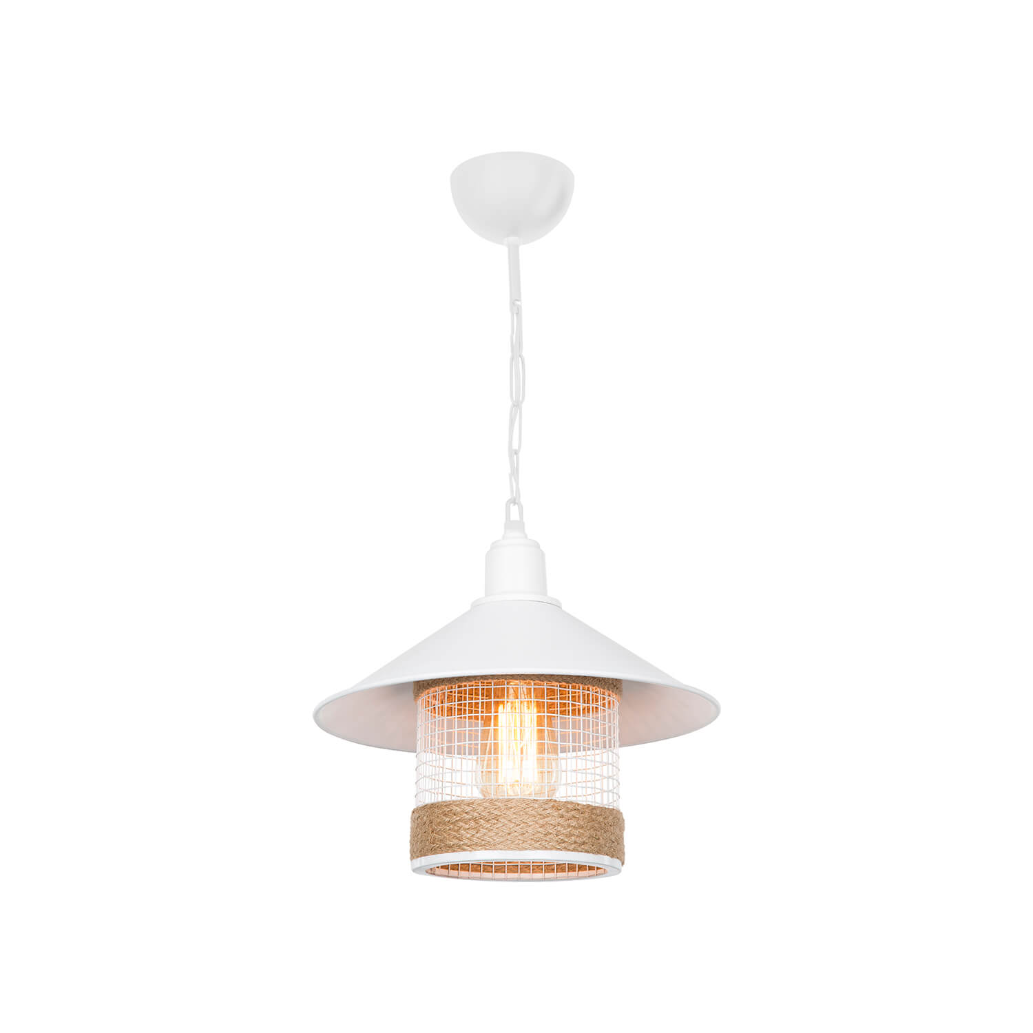 . Elektrostatisch lackiertes Metallskelett, das den modernen Stil widerspiegelt; „Nil Pendant“, das ein anderes Design aufweist, indem es mit einem in organisches Seil gewickelten Käfig gemischt wird, verleiht der Umgebung, in der es sich befindet, ein anderes Ambiente.
