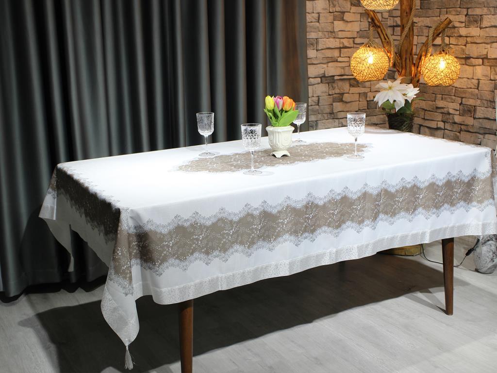 Produktinformationen "Nilüfer Rechteckige bedruckte Tischdecke Creme Beige"