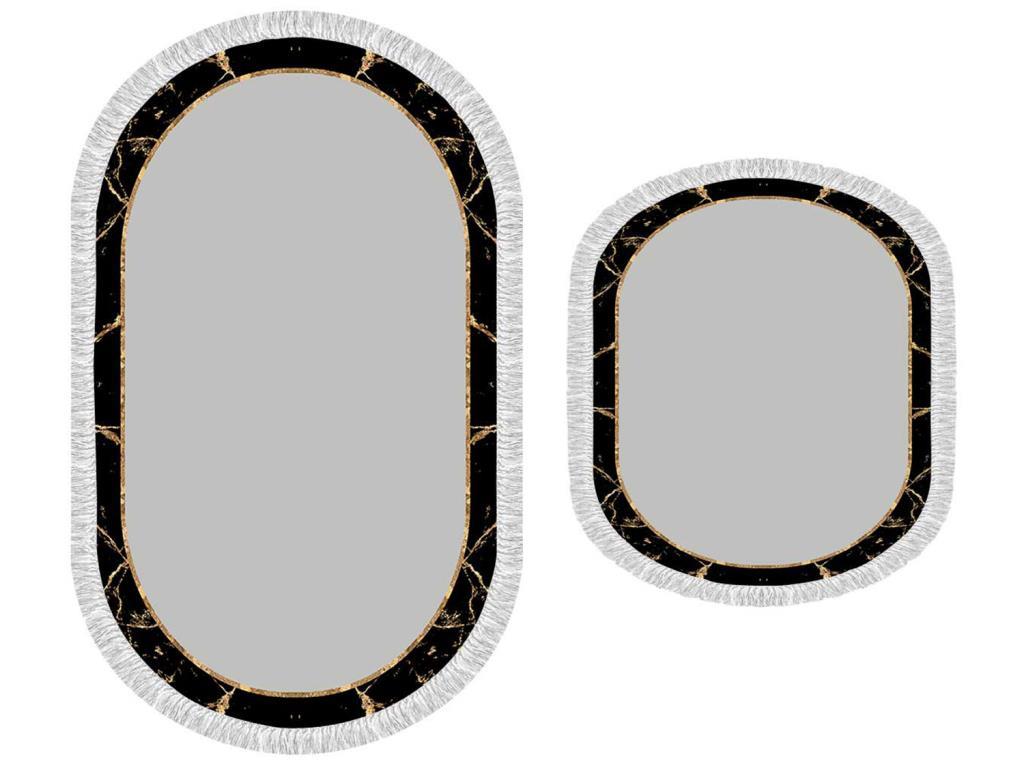 Ovales 2-teiliges Badematten-Set mit Fransen Space Grey