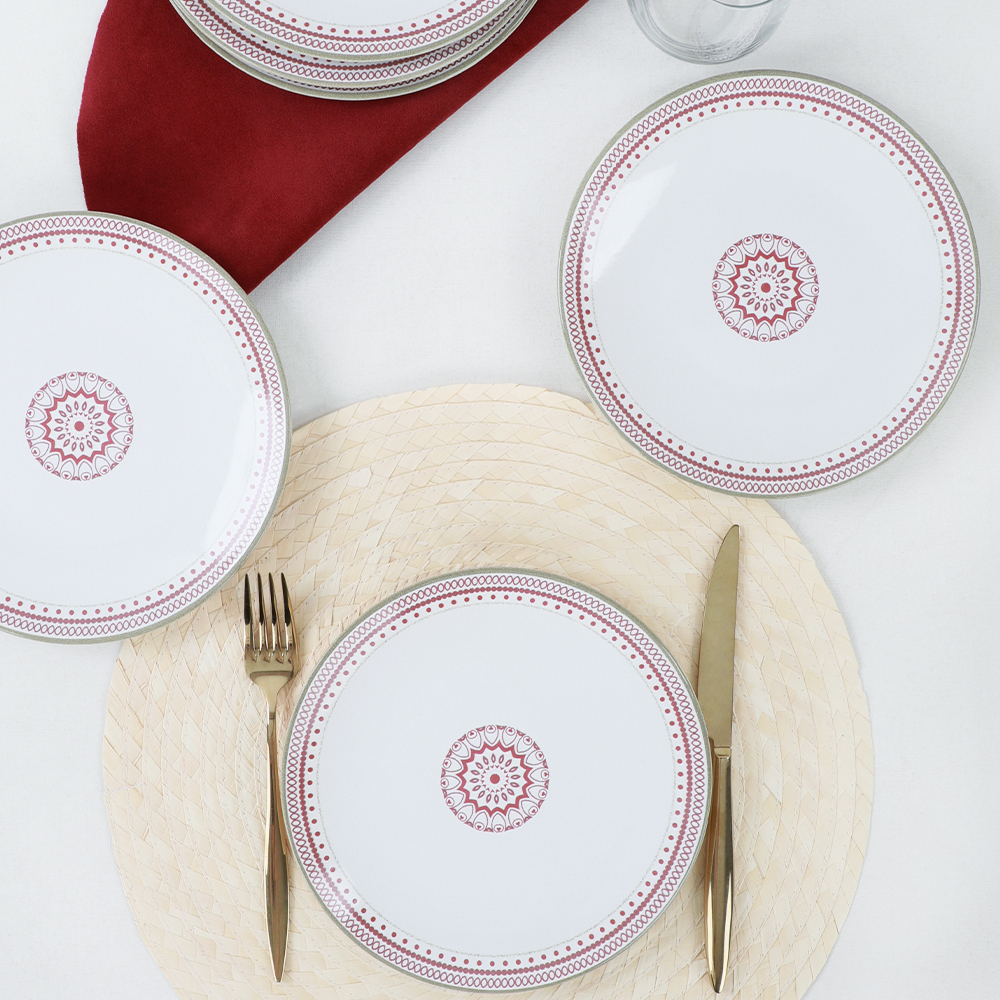 Misafirlerinize lezzetli ikramlarınızı keramika red circle pasta tabağı ile yapın... Kırmızı dairesel dekorları ile masanız için kullanışlı, her biri özel tasarıma sahip olan bu ürünler, sunumlarınızı bir sanata çevirerek hem göz zevkinize hem de damak zevkinize hitap ediyor. Lezzetli dolu hediyeler vermenizi sağlayacak bu pasta tabakları sevdiklerinizi özel hissettirecektir.