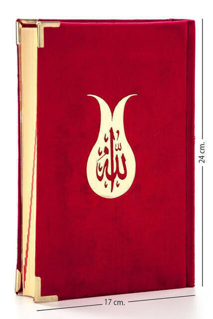 Samtbedeckter Heiliger Koran Mittellanges Rotweinrot (Furkan-Publikation) - Computer Line
