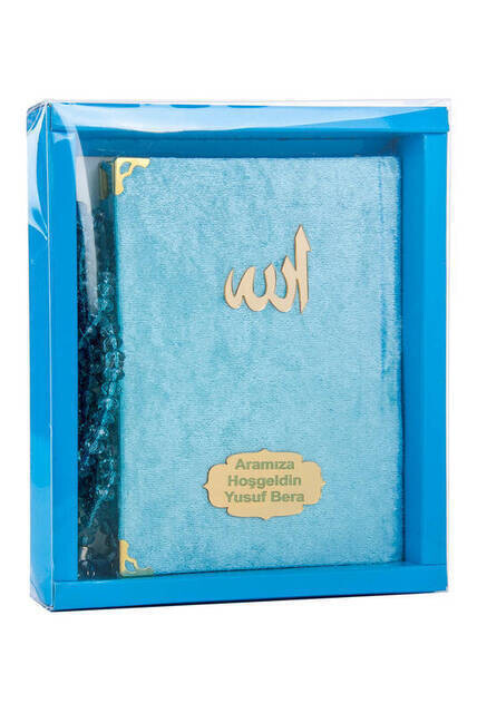 Produktinformationen "Samtbedecktes Yasin-Buch - Taschengröße - Name Spezialplatte - Rosenkranz - Boxed - Blaue Farbe - Religiöses Geschenk"