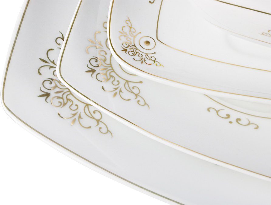 Lieferumfang und Abmessung: 1 x Schäfer 86 Teiliger Porzellan Tafelservice Set Blumenmuster Quadrat | 12 Personen | 31015