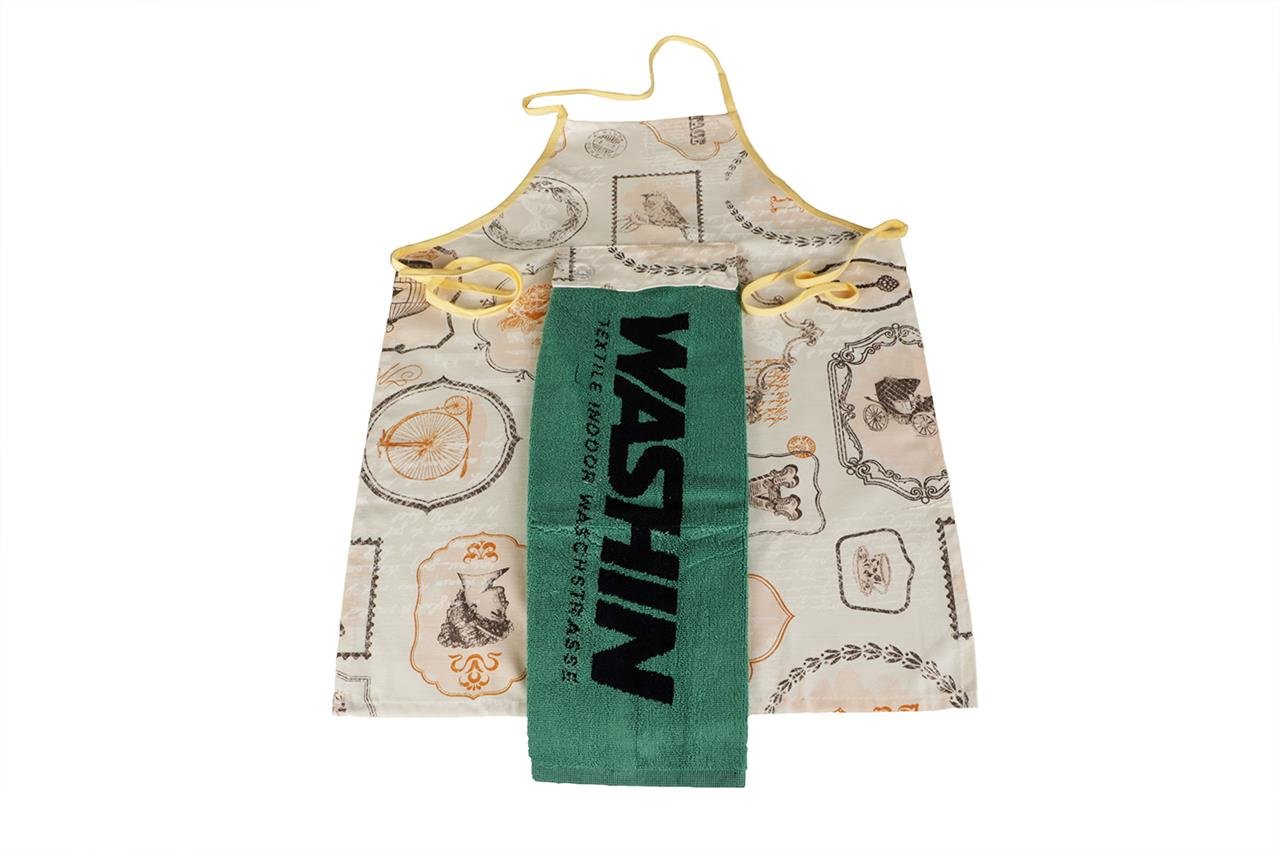 - Handtuch befestigt an Schürze: Dunkelgrün