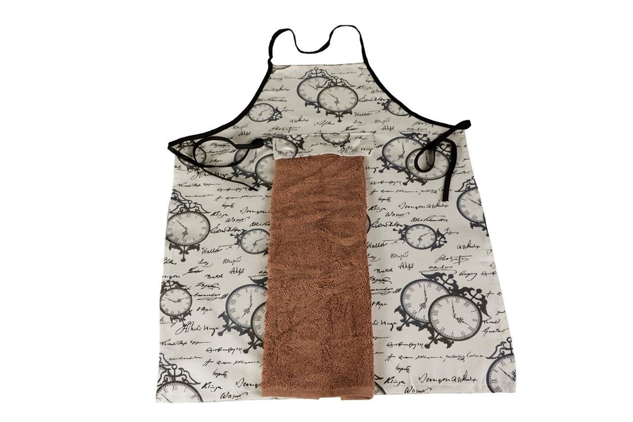 - Handtuch befestigt an Schürze: Hellbraun