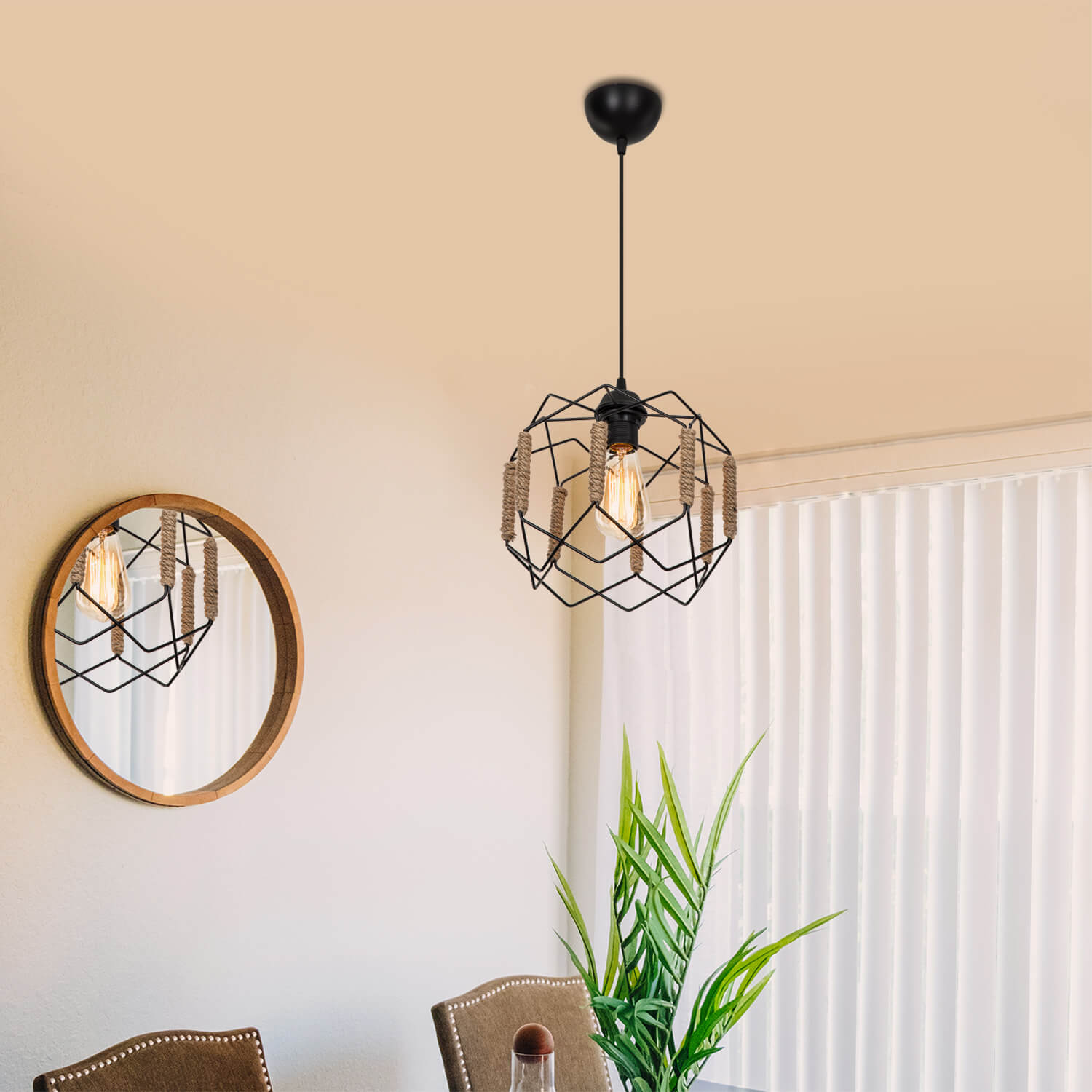 . Elektrostatisch lackiertes geometrisches Metallgehäuse; "Ebon Pendelleuchte", die dank der organischen Seile ein anderes Design hat, verleiht der Umgebung, in der sie sich befindet, ein anderes Ambiente.