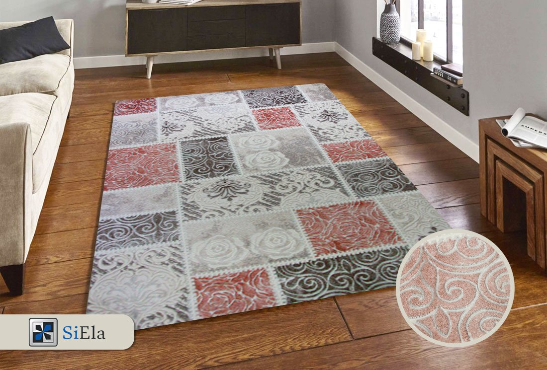 Lieferumfang und Abmessung: 1 x Siela | Cardin Collection | Teppich | Rosa | %100 Polyacryl & Wolle | Höhe 13mm | 3,3 kg | S-2671-Pink-080x150