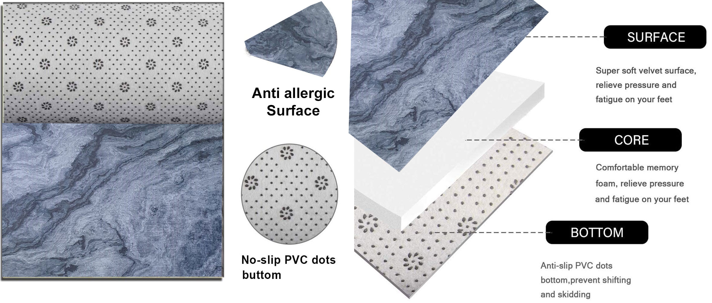 Material: 100% Polyester. Nicht abbaubare Dod-Untergrund mit rutschfestem Boden, langlebige Fransen, ideal für Marmor- und Holzbodenoberflächen, keine Beschädigung des Bodens, die beste lebendige Farbqualität ergibt sich aus der Darstellung.