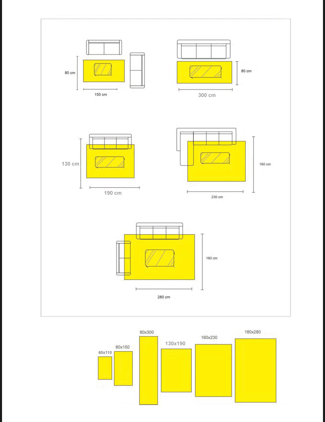 Maße: 80cm x 150cm, 80cm x 300cm, 120cm x 170cm, 160cm x 230cm