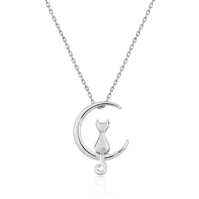 Lieferumfang: 1 x Silberne Crescent Cat Halskette