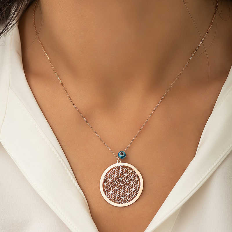 Lieferumfang: 1 x Silberne Evil Eye Blume des Lebens Halskette