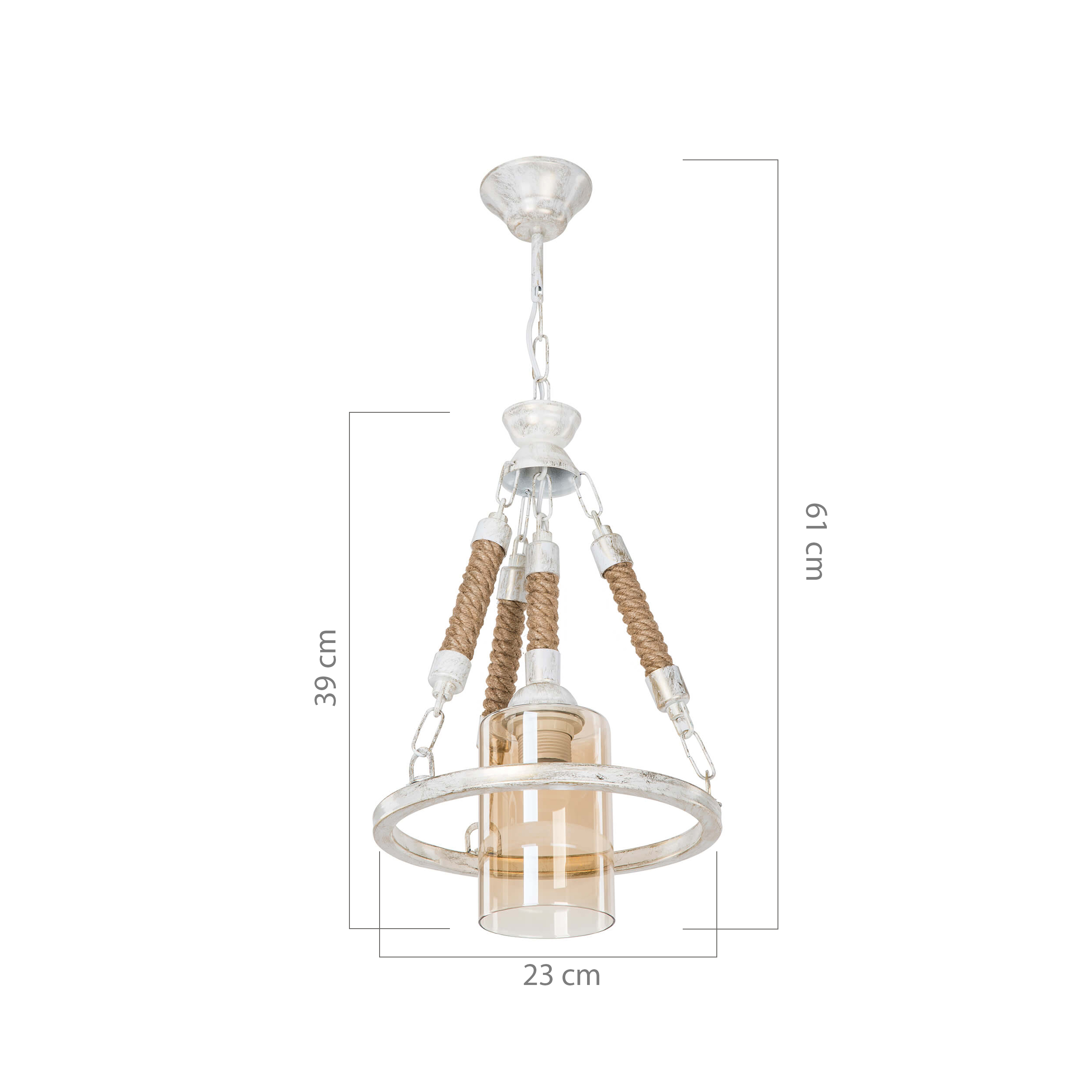 . Mit seinem elektrostatisch lackierten Metallgehäuse, den organischen Seilen und dem Zylinderglas verleiht der "Sofia Pendant", der ein anderes Design hat, der Umgebung, in der er sich befindet, ein anderes Ambiente.