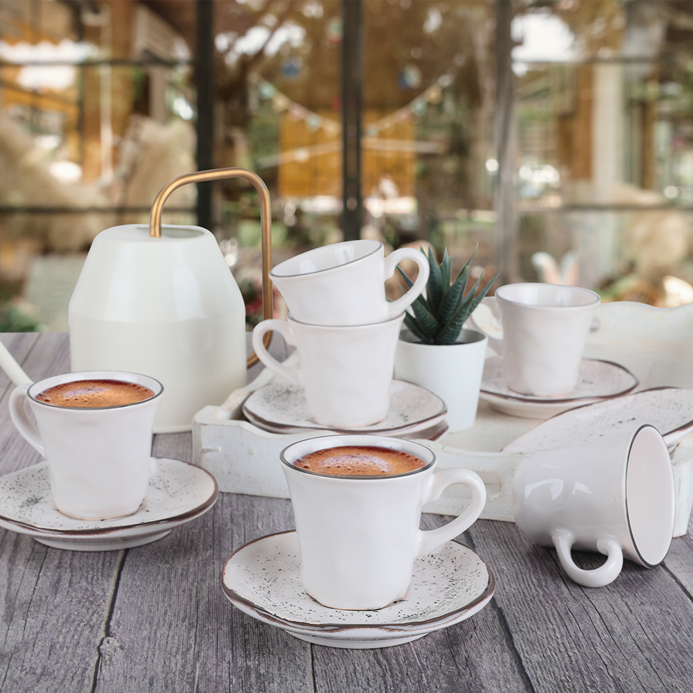 Mit dem Keramika Splash Coffee Set für 6 erhalten Ihre Kaffeestunden eine andere Dimension! Dieses Kaffeeset wird von Meisterhänden mit seiner innovativen strukturierten organischen Form und den edlen Farben hergestellt und bringt auch Qualität und Haltbarkeit mit sich. Dieses Kaffeeset, das mit seinen Brauntönen über Weiß die Aufmerksamkeit Ihrer Gäste auf sich zieht, bringt jeden Geschmack und ist auch eine schöne Geschenkoption, um Ihre Lieben glücklich zu machen.