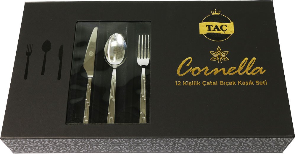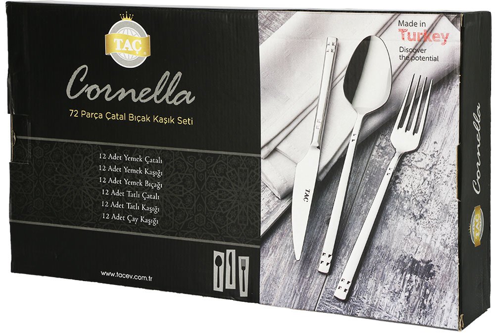 Lieferumfang und Abmessung: 1 x Tac Cornella Linus 72 Teiliges Besteck Set | 12 Personen | Tac-5073