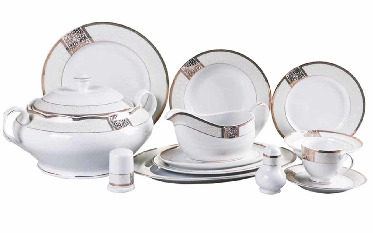 Lieferumfang und Abmessung: 1 x Tac Hermes Brush Gold Porzellan Ess Set 86 Teilig für 12 Personen | TAC-1496