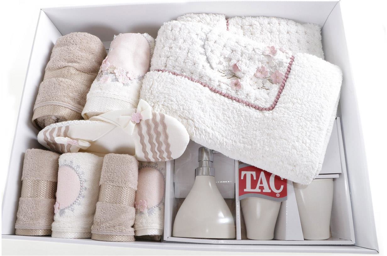 Abmessung & Lieferumfang: 1x Tac | Isabella | Familien Badset | 13 Teile| Weiß/Braun | 86940