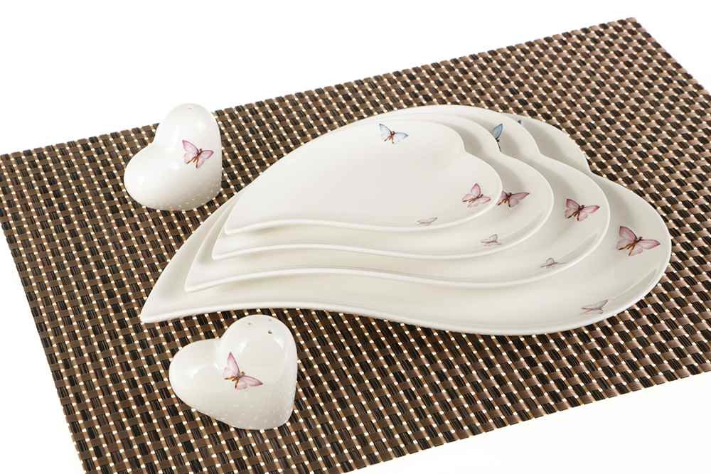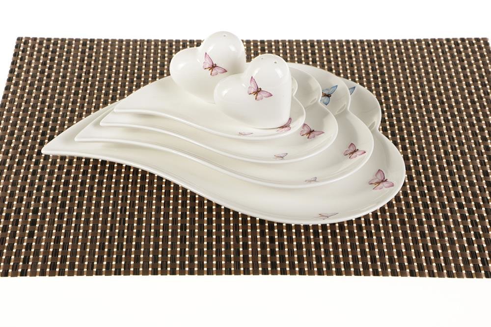 Mit der schlichten herzförmigen Form, passt dieses Teller Set sowohl in modernen Haushalten, sowie Küchen, als auch in klassischen perfekt dazu. Das Set ist sowohl Spülmaschinengeeignet als auch Mikrowellenfest.