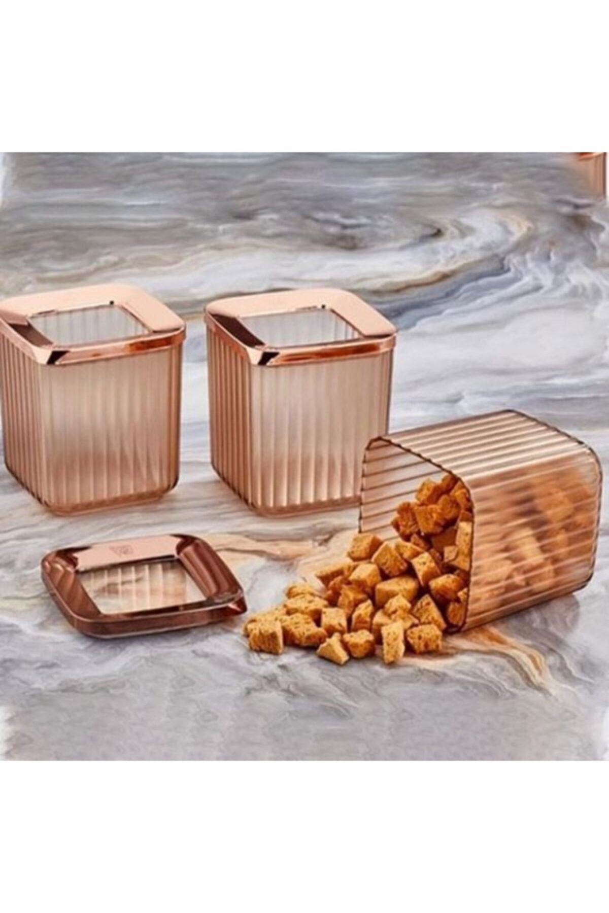 Lieferung : 1 x Vip Ahmet 3-Quadrat Transparent Aufbewahrungsbox Set 3x800ml | Kupferfarbabdeckung | VIPAHMET-VP-108