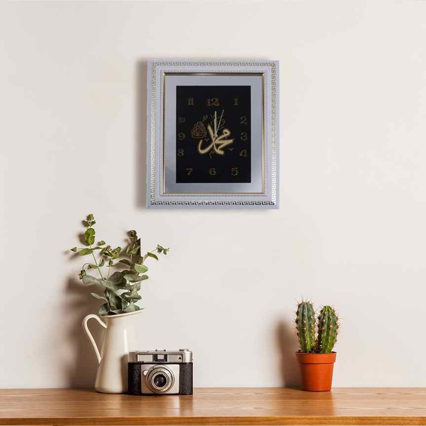 Artikelbezeichnung: Wanduhr PR. Muhammed 50x39,5cm Weiß-Gold