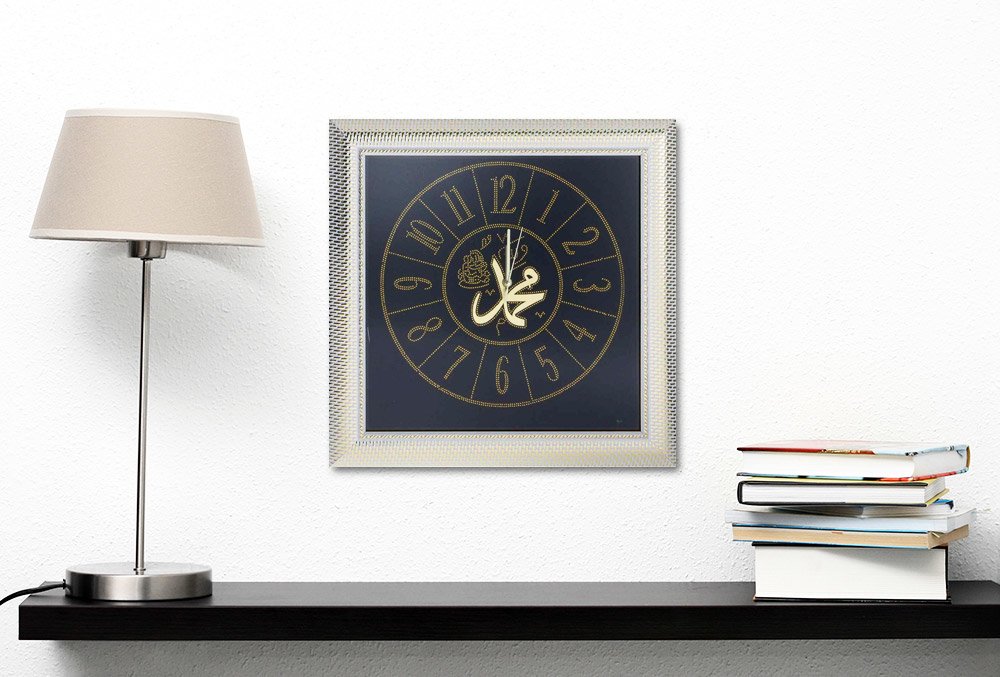 Artikelbezeichnung: Wanduhr PR. Muhammed 50x50cm Weiß-Gold
