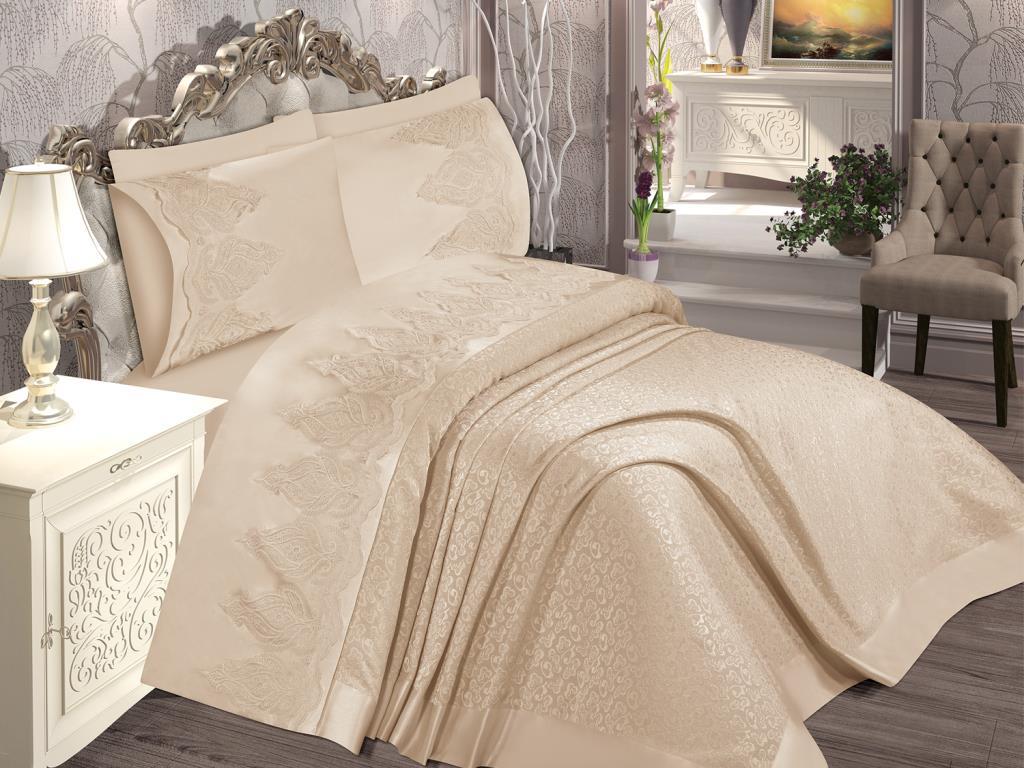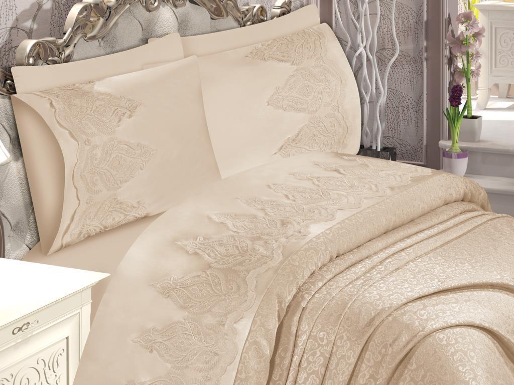 Produktinformationen "Yasmin French Guipure Brokat Piqué Set Cappucino"