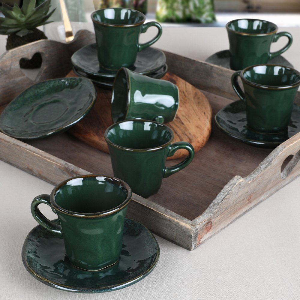 Mit dem Keramika 6-Personen Zümrüt Kaffeeset erhalten Ihre Kaffeestunden eine andere Dimension! Dieses Kaffeeset wird von Meisterhänden mit seiner innovativen strukturierten organischen Form und den edlen Farben hergestellt und bringt auch Qualität und Haltbarkeit mit sich. Mit seinen smaragdsteinähnlichen Farben ist dieses Kaffeeset, das die Aufmerksamkeit Ihrer Gäste auf sich zieht und alle schätzen lässt, auch eine schöne Geschenkoption, um Ihre Lieben glücklich zu machen.