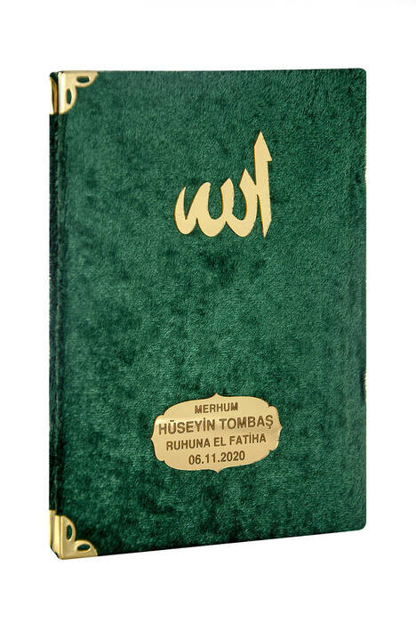 Product information "20 Pieces - Velvet Covered Imported Paper Yasin Book - 80 Pages - Special to Name - Bag Size - Green Color - Me"