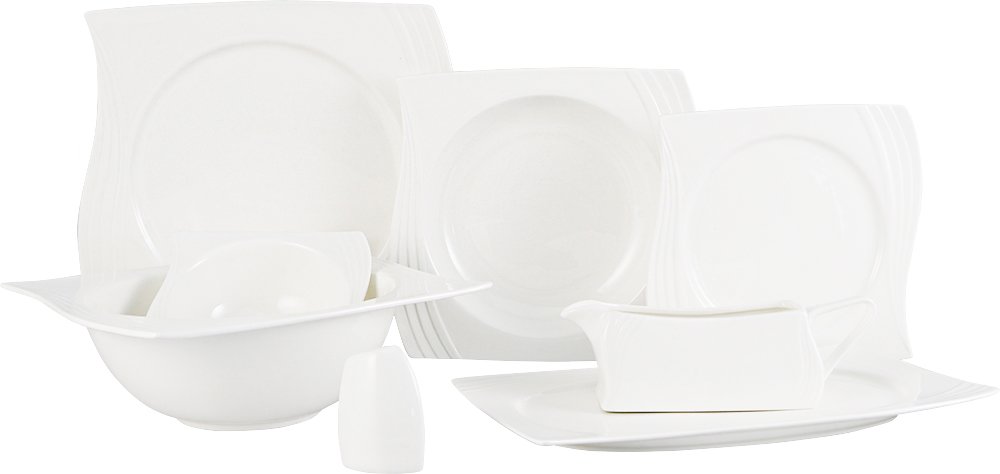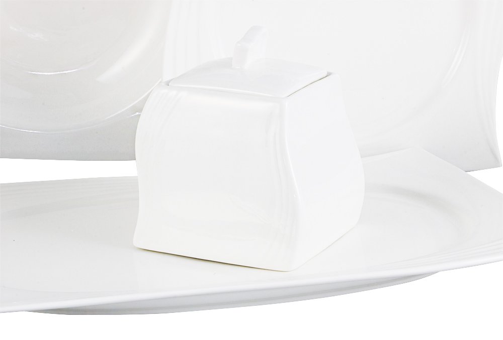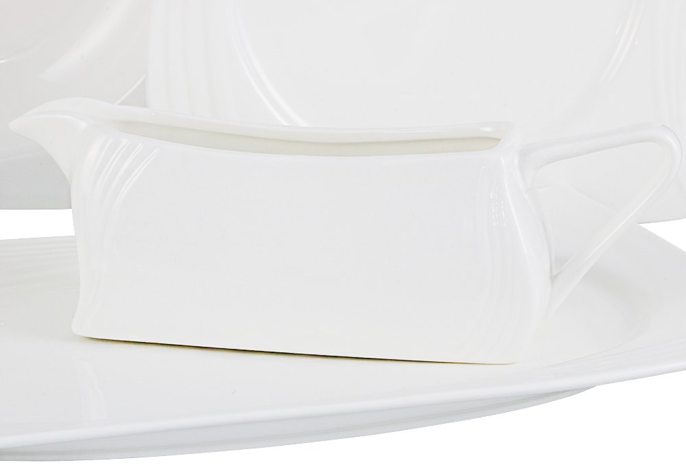 Delivery and Dimensions: 1 x Alegra Tullip High Quality 43 Piece Porcelain Dinnerware | 6 People | White