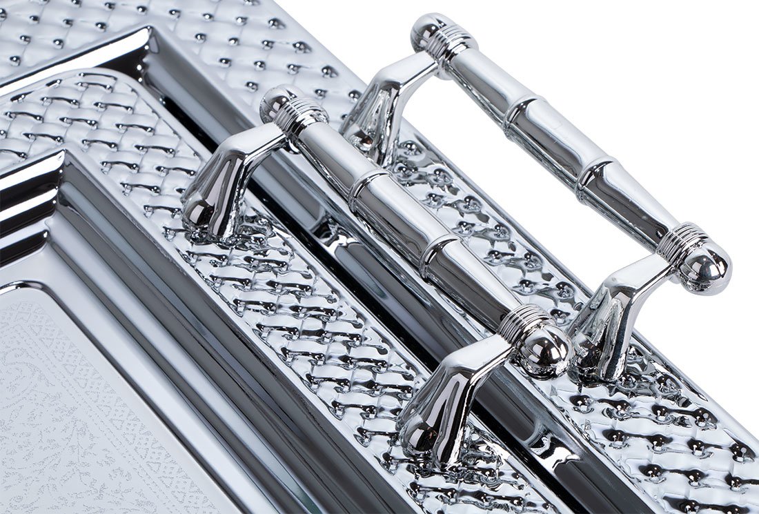 Delivery : 1x Almina 2-Piece Embroidered Metal Tray | Silver | Al-4014-1