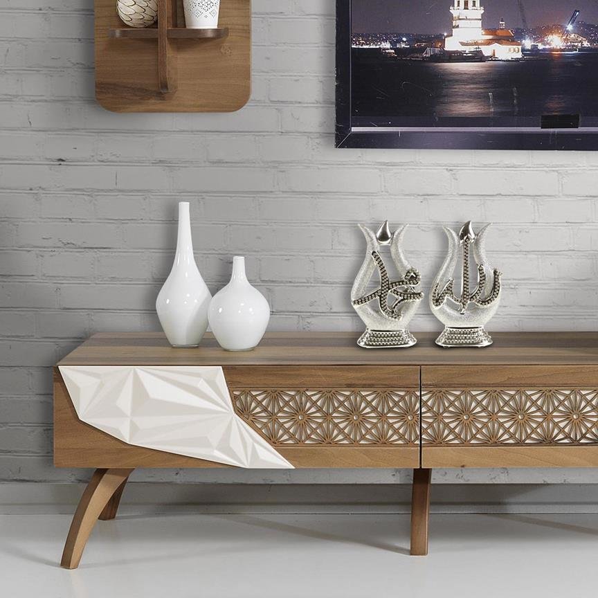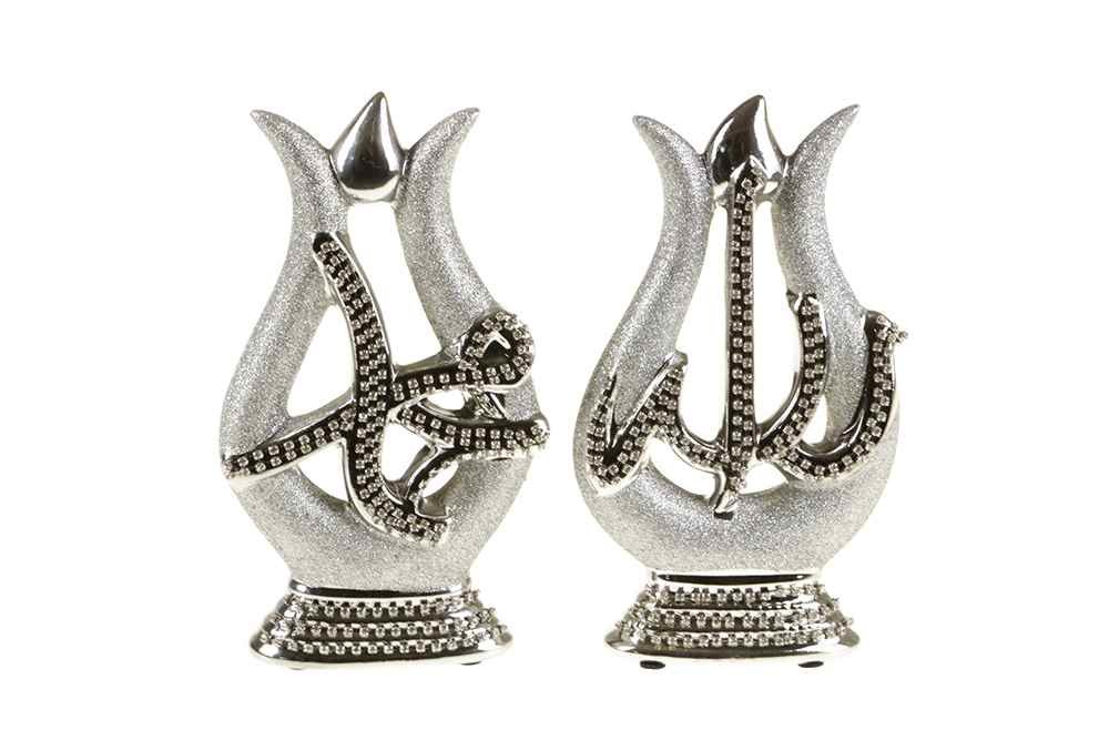 Ürün adi: Almina 2 Parça "Allah & Muhammed" Yazılı Biblo - Gümüş