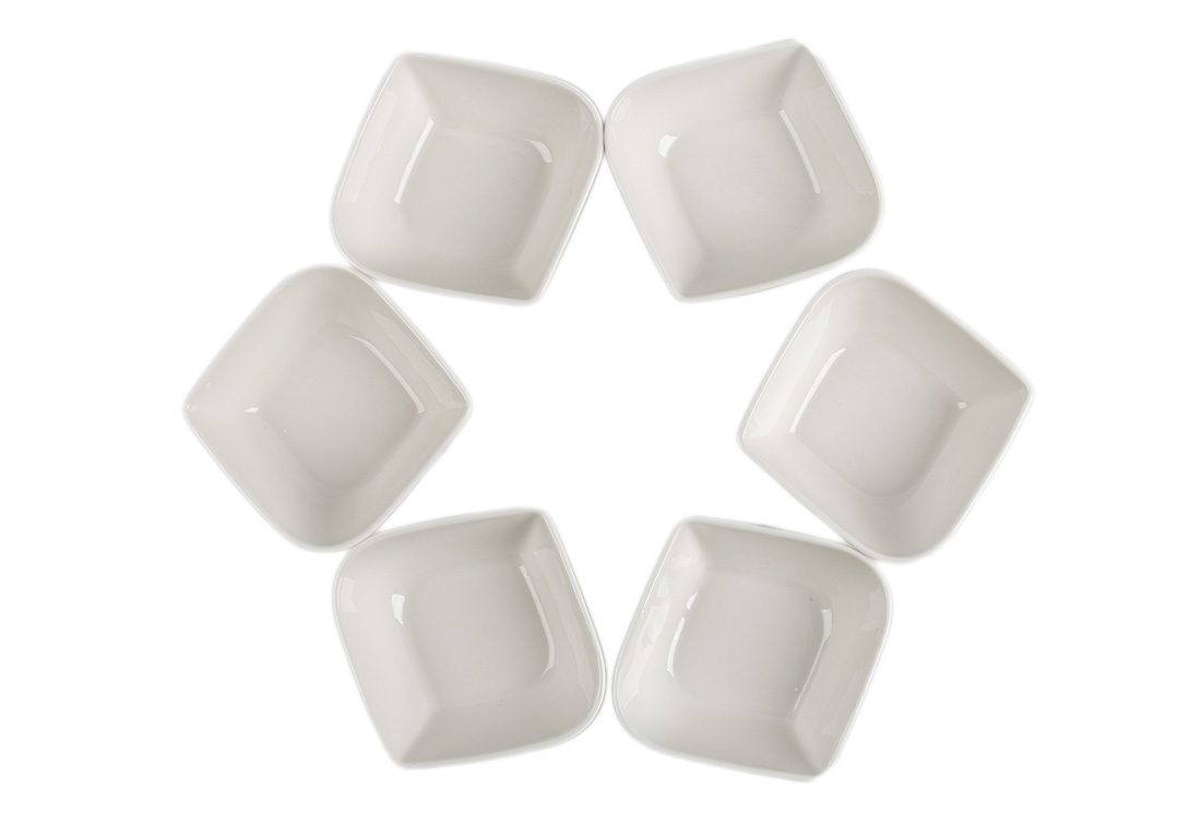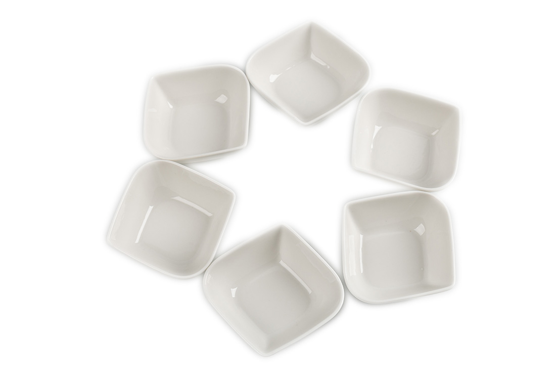 Delivery and Dimensions : 1x Almina | 6 Piece Porcelain Bowl Set | Oval / Angular | White | Al-4403
