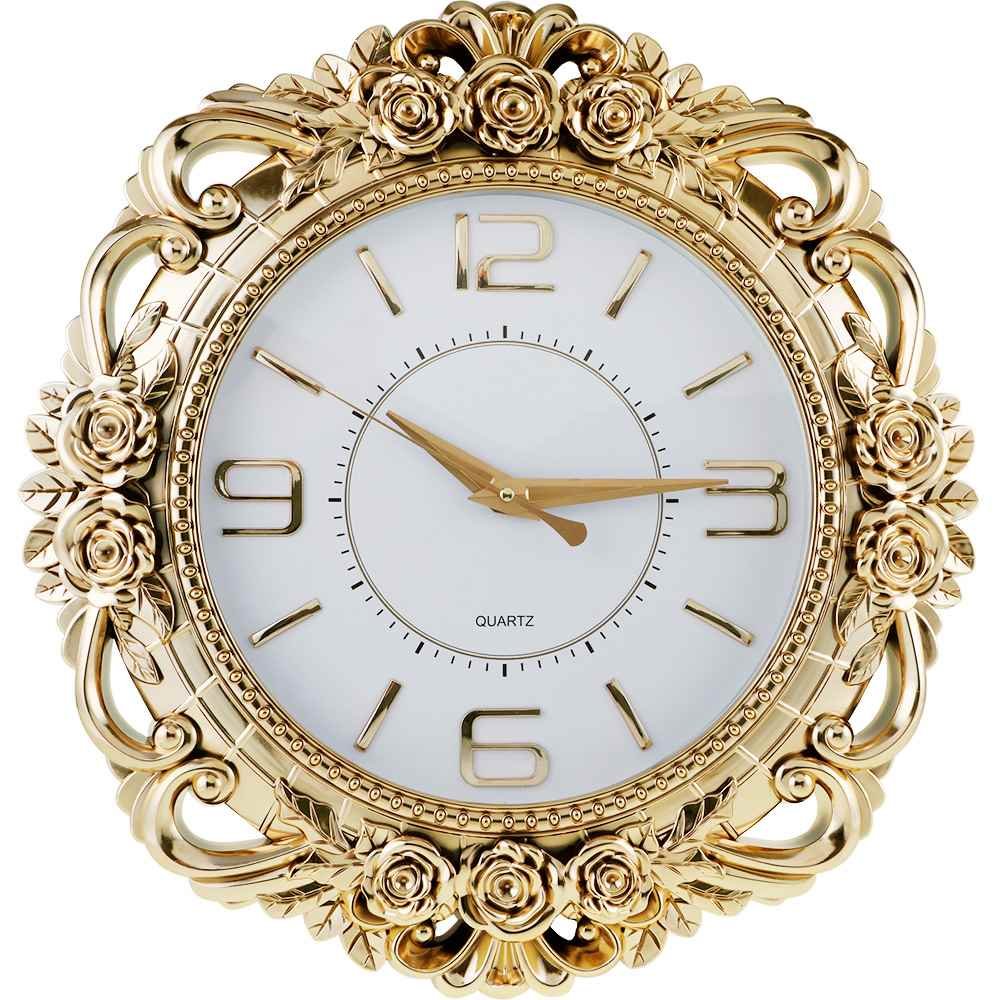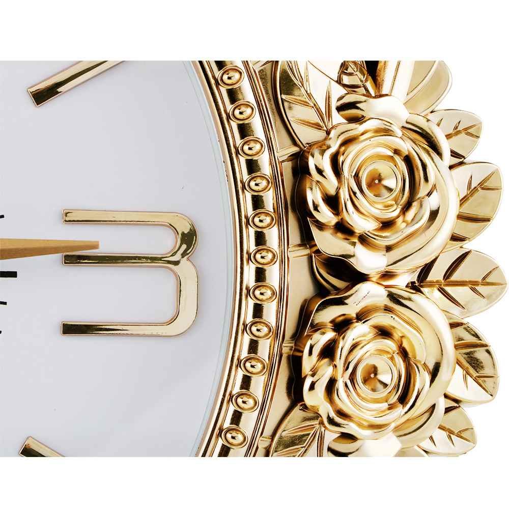 Teslimat: 1x Almina Büyük Boy Gül Motifli Yuvarlak Duvar Saati - Altın 50x50cm