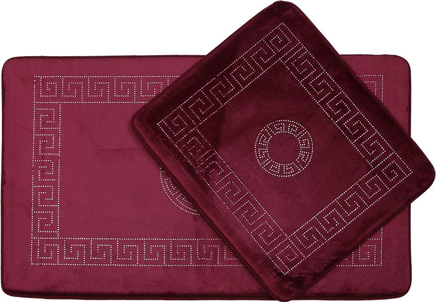 Delivery and Dimensions: 1 x Almina Elegance Polished Stone Bath Mat Set 2 Piece Maxi | Maroon