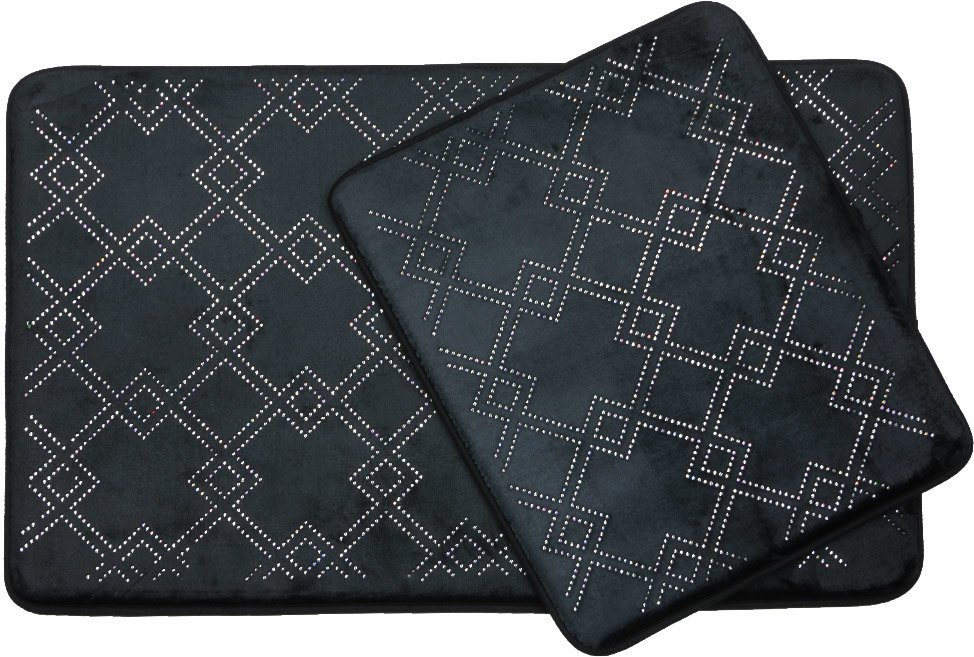 Delivery and Dimensions: 1 x Almina Elegance Polished Stone Square Pattern Bath Mat Set 2 Piece Midi | Black