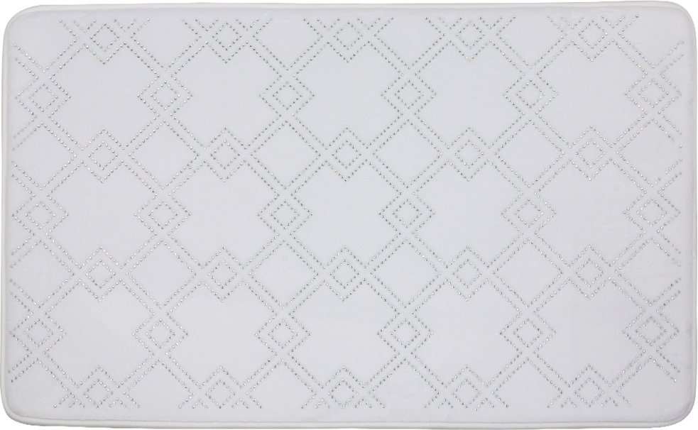 Delivery and Dimensions: 1 x Almina Elegance Polished Stone Square Pattern Bath Mat Set 2 Piece Midi | White