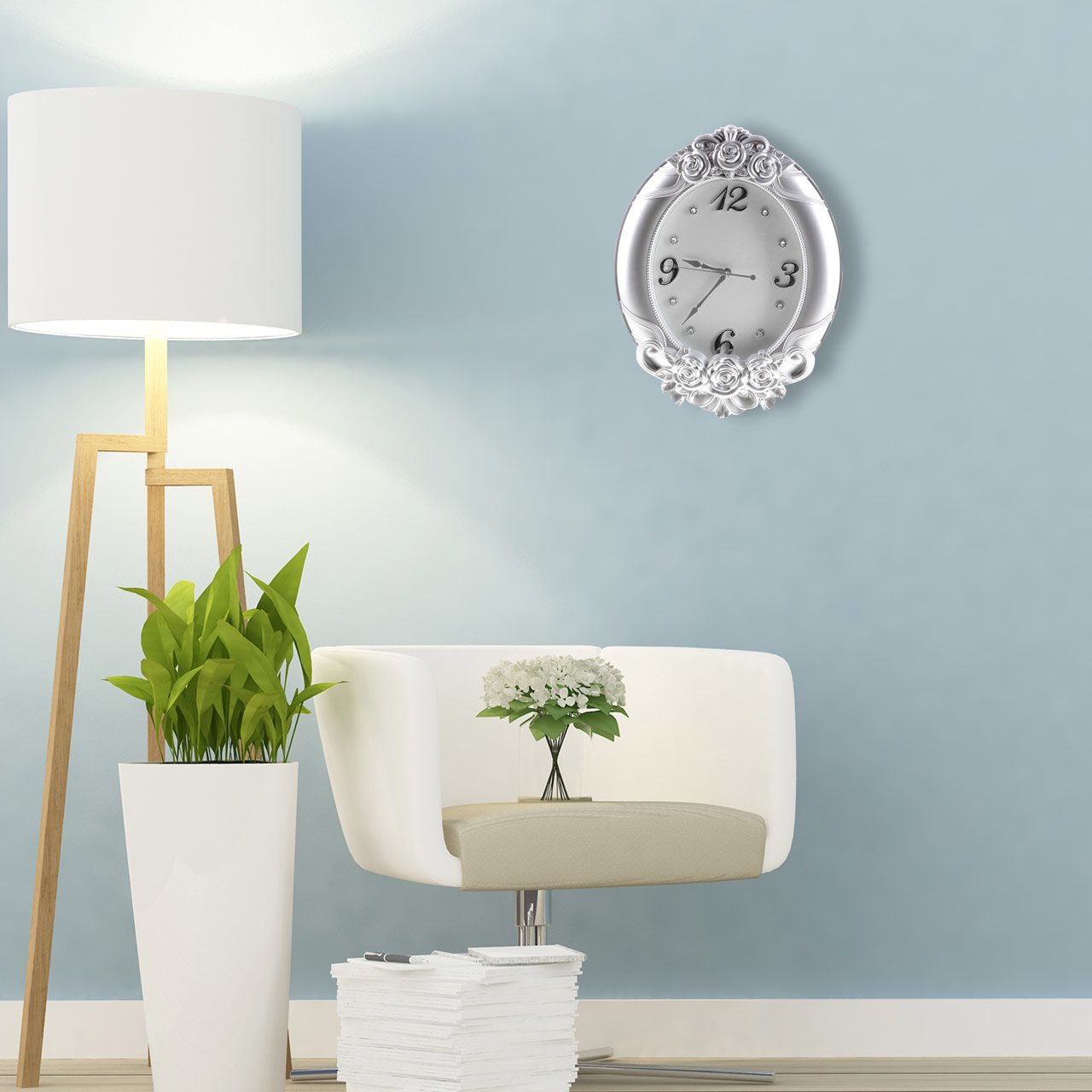 Ürün adı: Almina Gül Desenli Oval Duvar Saati - Gri