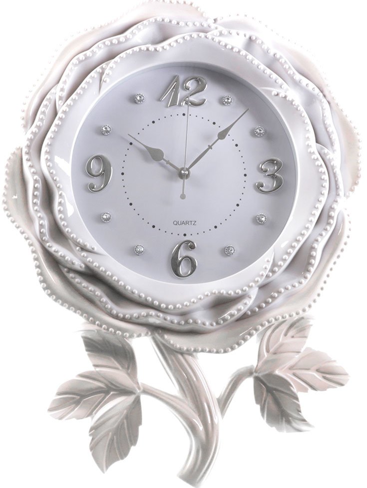 Teslimat: 1x Almina Gül Süslemeli Duvar Saati - Beyaz