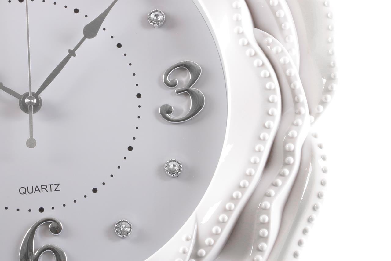 Ürün adı: Almina Gül Süslemeli Duvar Saati - Beyaz
