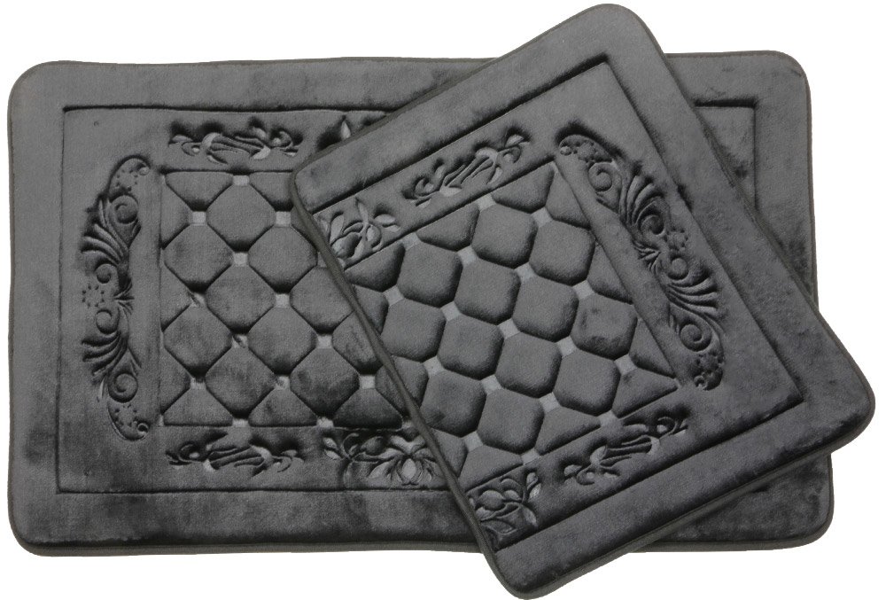 Delivery and Dimensions: 1 x Almina Premium Square Pattern Bath Mat Set 2 Piece Midi | Black