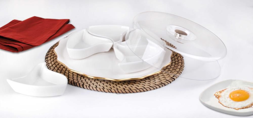 Asaf Seramik 6 Piece White-Gold Breakfast Set