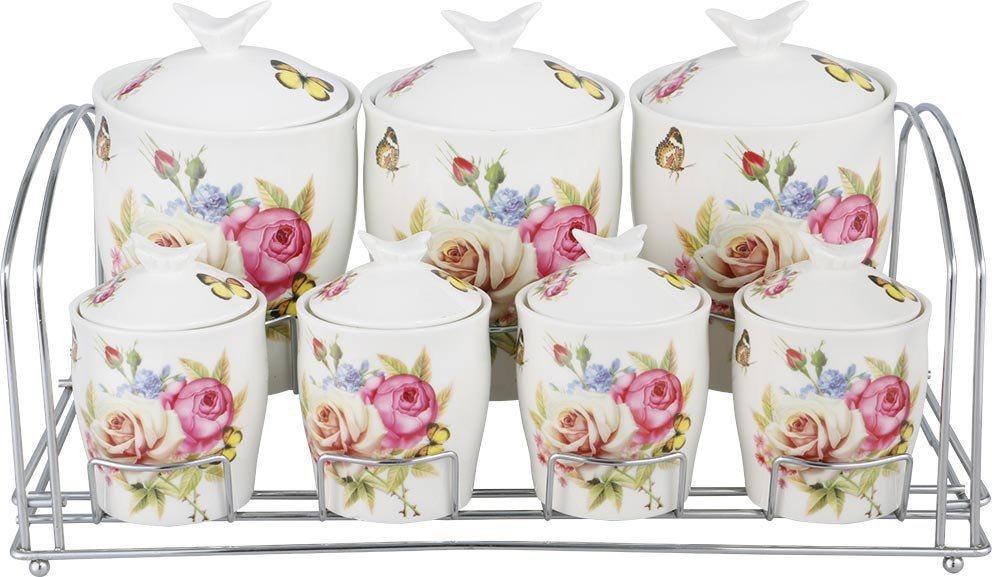 Delivery and Dimensions: 1 x Bavary Fine Porcelain Spice Set 15 Pieces | Pink | Rose Butterfly Pattern | HYWJ255D