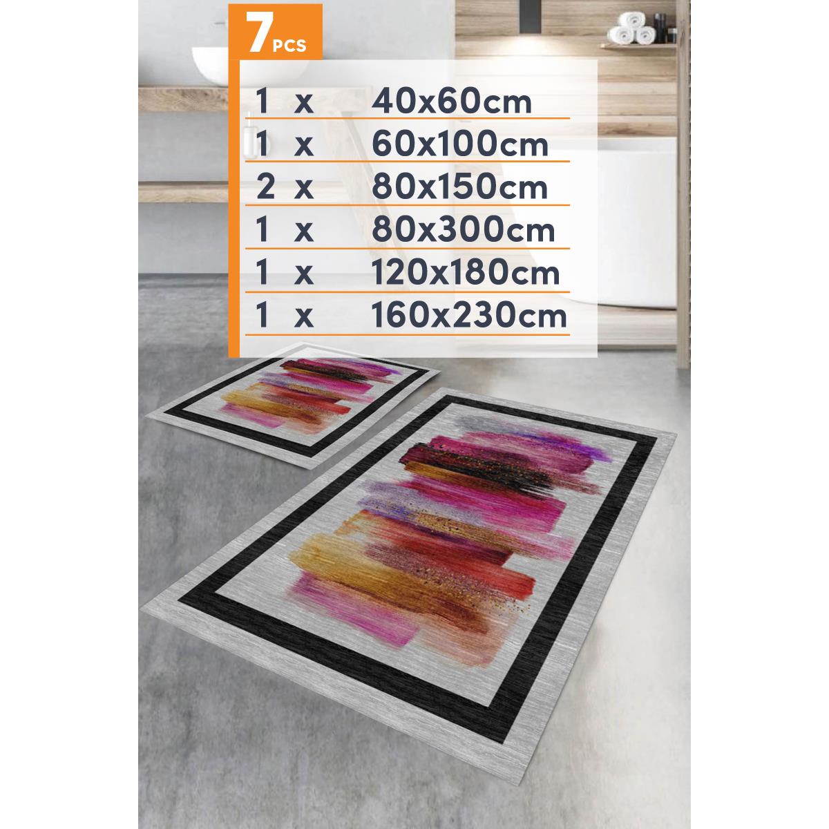 Birkilim 7 Pieces Washable Carpet Set | MLN-HS249-1-KMP