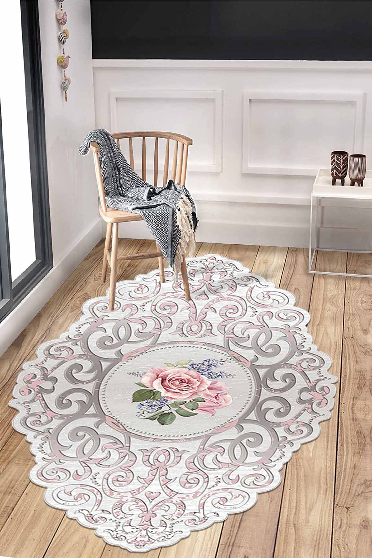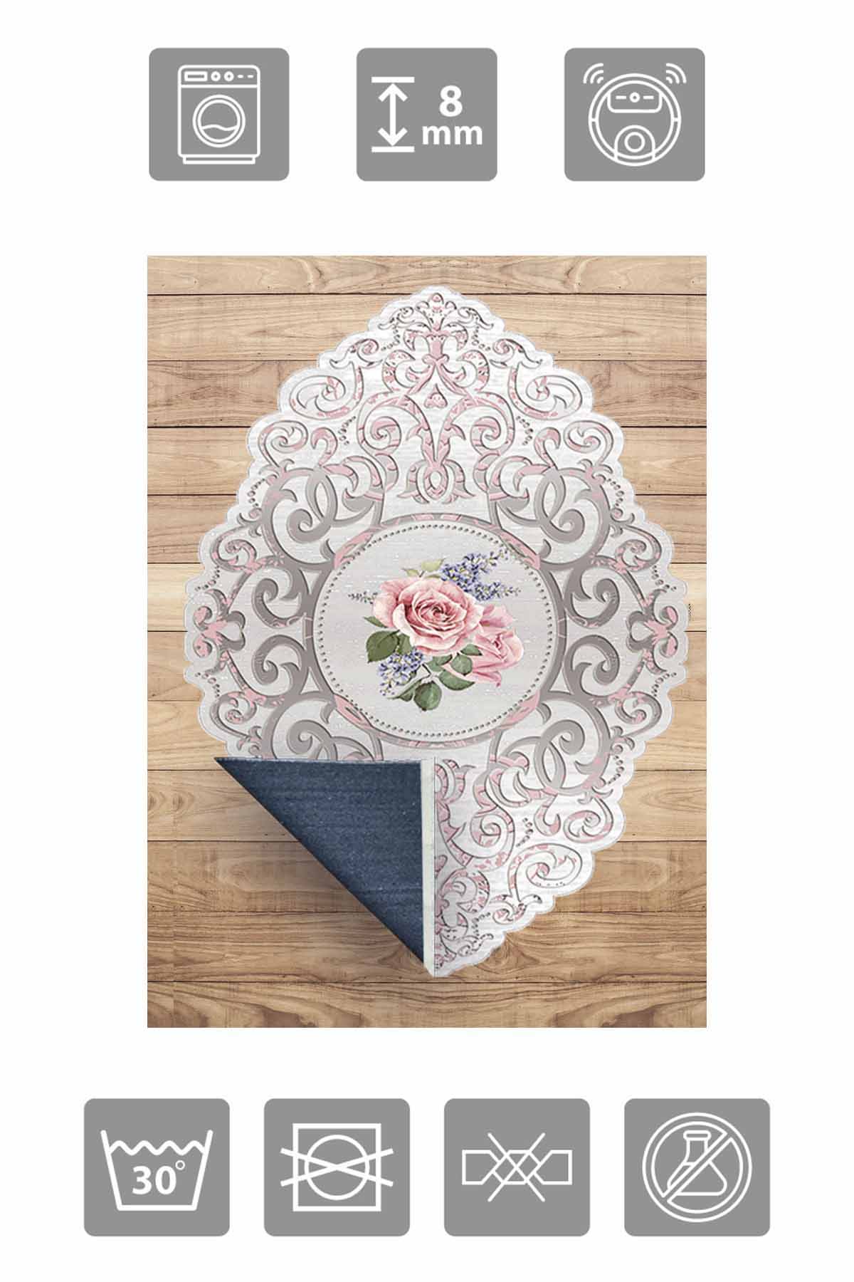 Dimensions and Delivery: 1x Birkilim Laser Cut Washable Silky Non-Slip Base Decorative Carpet | MLN-IP-HT-1041
