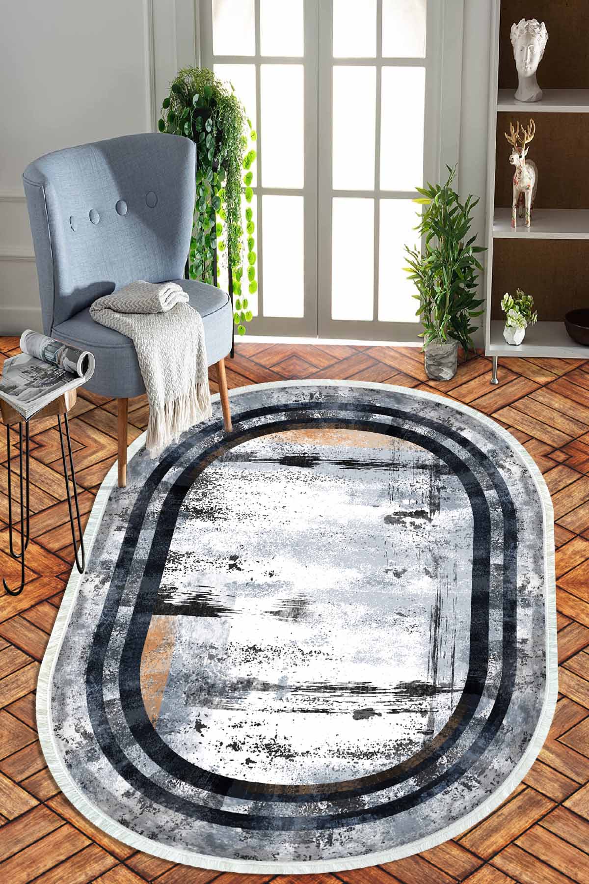 Birkilim Oval Washable Silky Non-Slip Base Decorative Carpet | MLN-IP-O-HT-1273